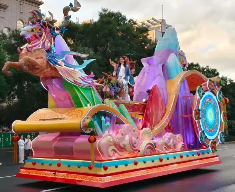 从文化传播维度来看,花车巡游实现了传统文化符号的现代转译与多维破圈。它将抽象的哲学思想、神话传说转化为具象化的视觉盛宴,通过设计语言的创新表达,既保留了文化基因的本真性,又赋予其当代审美价值。这种沉浸式展演不仅强化了文化符号的识别度,更通过社交媒体裂变传播,使红山玉璧的灵韵、草原云纹的律动成为跨越地域的数字化文化名片,实现从在地展示到全球传播的价值跃升。